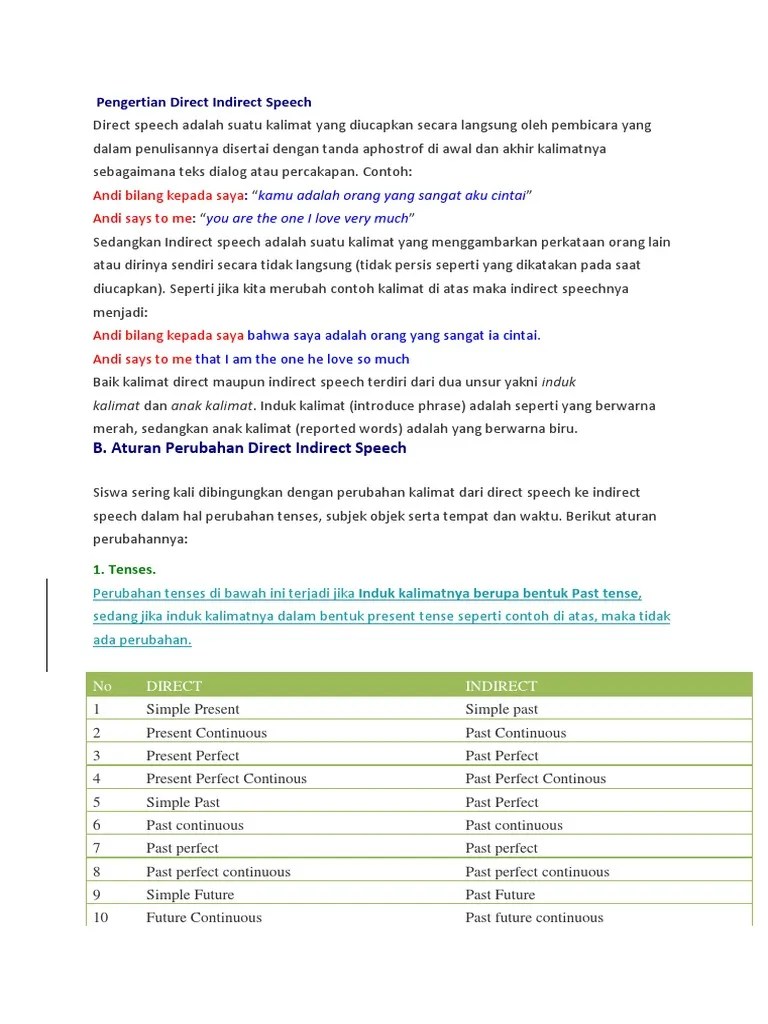 Penjelasan dan pengertian direct and indirect speech. Berdasarkan contoh di atas jelaslah bahwa simple past tense dalam tanda kutip berubah menjadi. Mistakes, or requesting someone's time or effort. My sister said that she had lost her money. Kalimat itu diberi tanda baca : 15 soal parts of speech pilihan ganda dan jawabannya jika berbicara parts of speech dalam bahasa inggris maka kita akan belajar dari pengertian noun pronoun verb adjective adverb preposition conjunction dan interjection.reported speech 1. She told us that she wouldn't be coming home that night yang artinya adalah dia mengatakan kepada kami bahwa dia tidak akan pulang ke rumah malam itu. pengertian direct dan indirect speech. Direct dan indirect speech (kalimat langsung dan tak langsung) direct speech adalah kalimat yang diucapkan langsung dari si pembicara. Bertemu lagi dengan tulisan tulisan kita. In order to have an indirect object in a sentence, there must be a direct. Posisi indirect object dalam kalimat bahasa inggris. pengertian, posisi, pola dan contoh "direct &